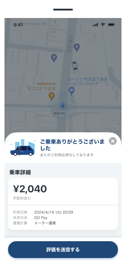 国内タクシーアプリ最大級のエリア展開を行う『GO』は、 『JapanTaxi』アプリと『MOV』の統合により誕生したタクシーアプリです。 タクシー車両とのリアルタイムな位置情報連携と高度な配車ロジックによって、 アプリユーザーと近くのタクシー車両とのマッチング精度を向上させ、 より「早く乗れる」体験を追求しています。